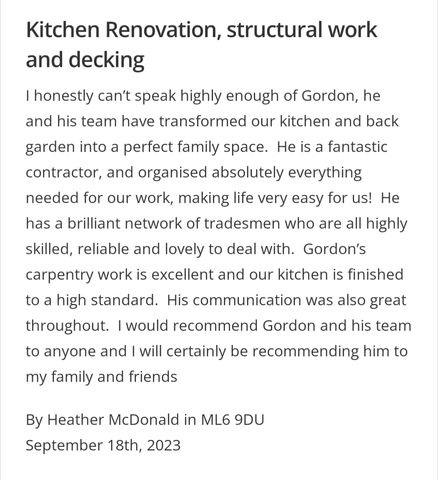 Mair Carpentry & Joinery has over 30 years of expertise in joinery services, focusing on building work, extensions, and loft conversions with an unwavering commitment to quality.